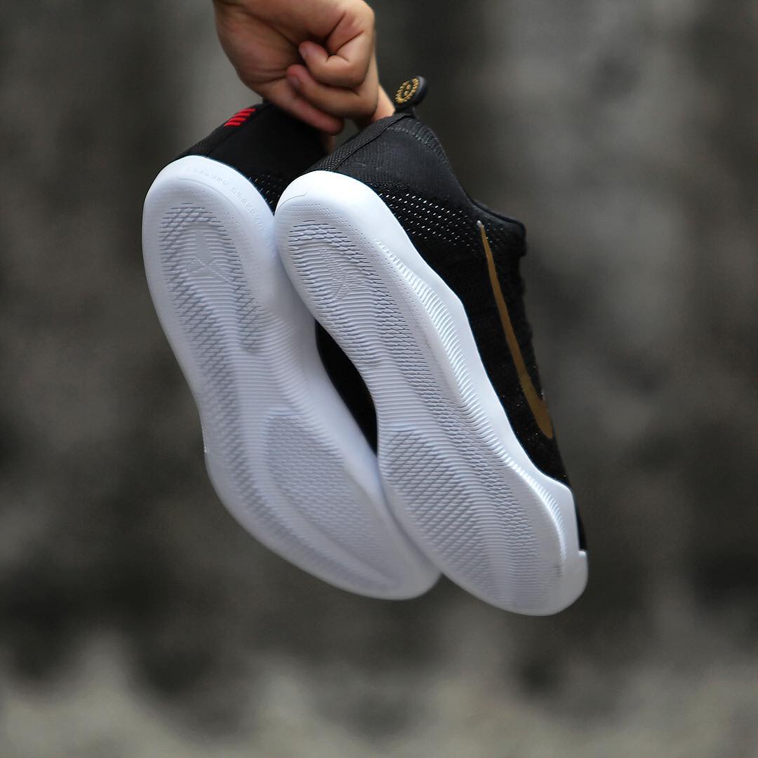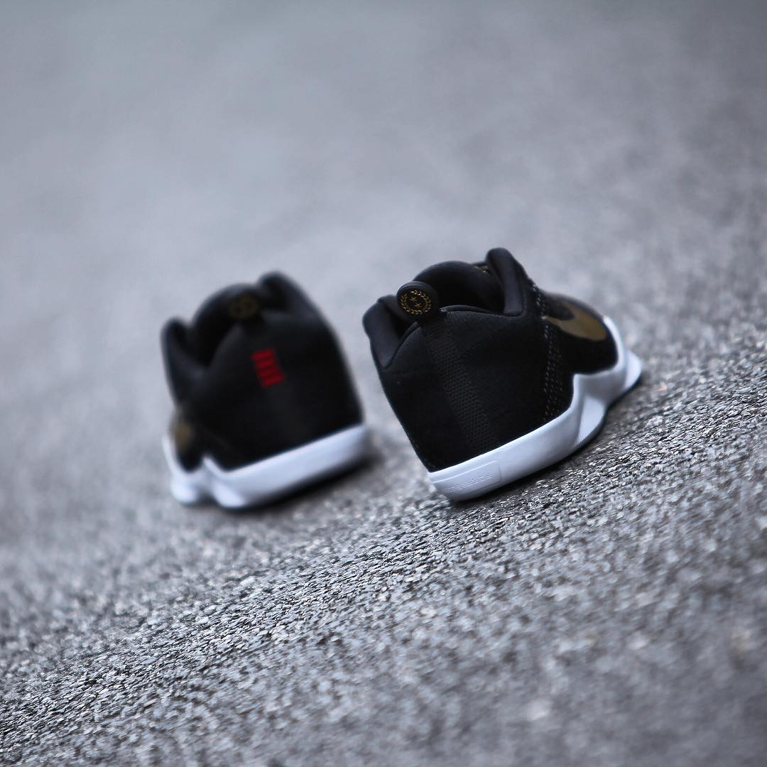 采用了同科比职业生涯最后一款赛场亲着战靴 Kobe 11 Elite Low FTB 类似的配色方案,但鞋身 Swoosh 和鞋舌 Kobe Logo 更具金属光泽,视觉效果同样抢眼!科比本人已经在马尼拉亲着上脚演示。
