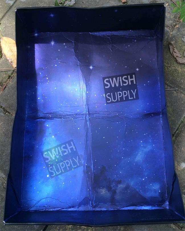 并没有采用抽屉鞋盒,内部以星空主题呈现,鞋盒表面则以兔八哥头像展现了 Looney Tunes 家族的标志。