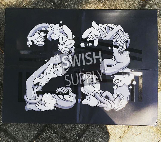 可以看到在鞋盒包装里,随处可见 45 字样,并以片中角色的手部细节,创造出 23 字样。