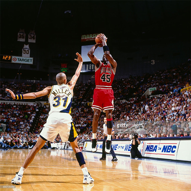 此次的鞋款本身以刺绣方式呈现了 Michael Jordan 首次回归 NBA 赛场的背号 45。在遭受了父亲被枪杀的噩梦之后,MJ 在 95 年的春天离开棒球赛场,回归篮球场,而在同年的夏季他就参与拍摄了同时代华纳合作的 《Space Jam》 空中大灌篮电影。