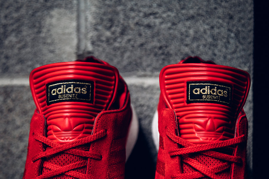 运动品牌 adidas 近日为旗下签约滑板手 Dennis Busenitz 发布一双全 Boost 版本的签名鞋款,鞋款采用了大红色的麂皮材质构成鞋身主体,辅以红色的三杠标志、内衬以及细节点缀,鞋身上则以烫金技术贴上 Busenitz 字样,外加 Boost 网面中底,是一双极其酷炫的滑板鞋。据悉,这款全新配色的 adidas Busenitz 发售为 $ 130 USD 。