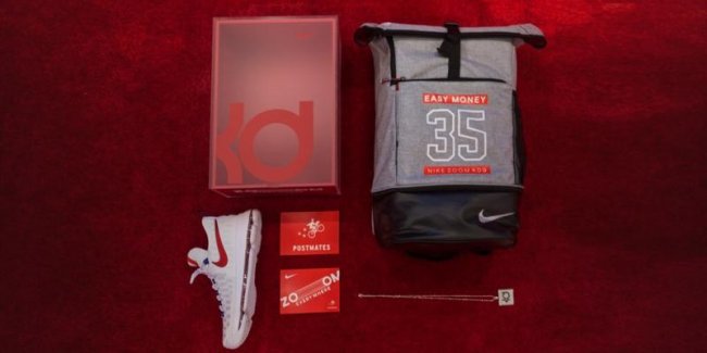KD 9 “USA/4th of July” 美国独立日配色即将发售,而杜兰特在忙着筹备奥运出征之时,还化身快递员,为球迷买家亲自送上了这款全新配色! 本次是 Nike 与当日达快递公司 Postmates 的联合活动,送递的这款 KD 9 则以特殊包装呈现,这位幸运买家除了能看到 KD 本人,手捧这一高规格的特殊包装,那心理恐怕是旁人难以设想的! 货号:843392-160 发售价:¥1399 相关信息: 杜兰特的小白鞋!KD 9 “USA” 中国官网已开启倒计时