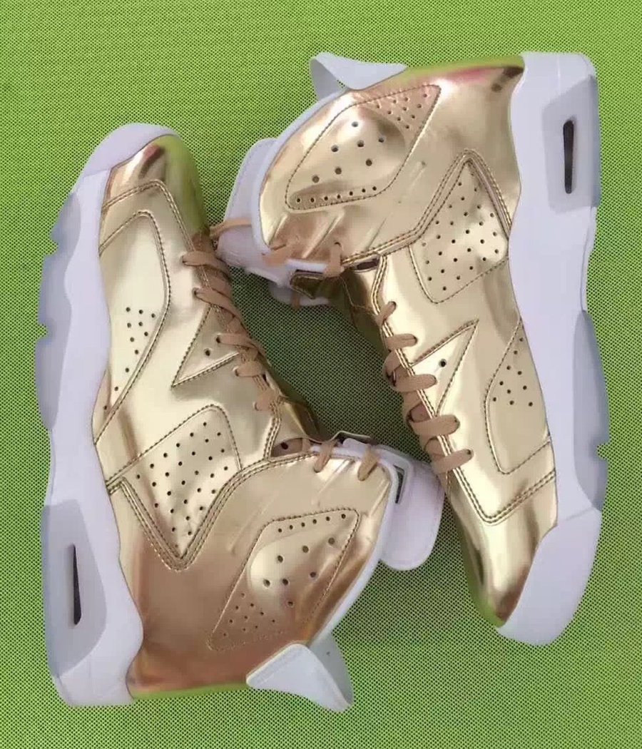 传言 Air Jordan 6 Pinnacle 将在今年年底发售,将斯派克李在奥斯卡终身成就奖之际的专属配色投入市售! 以贵金属光泽质感十足的金色鞋面搭配白色中底和水晶外底,同斯派克李版本有所不同的是,并没有采用蓝水晶材质打造面具鞋舌和外底。 货号为 854271-730,眼前这双球鞋是否会在年底发售,我们还将持续关注!