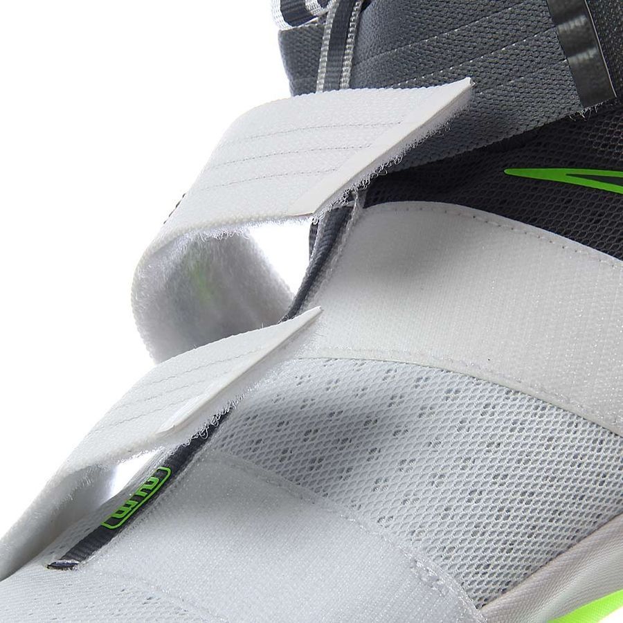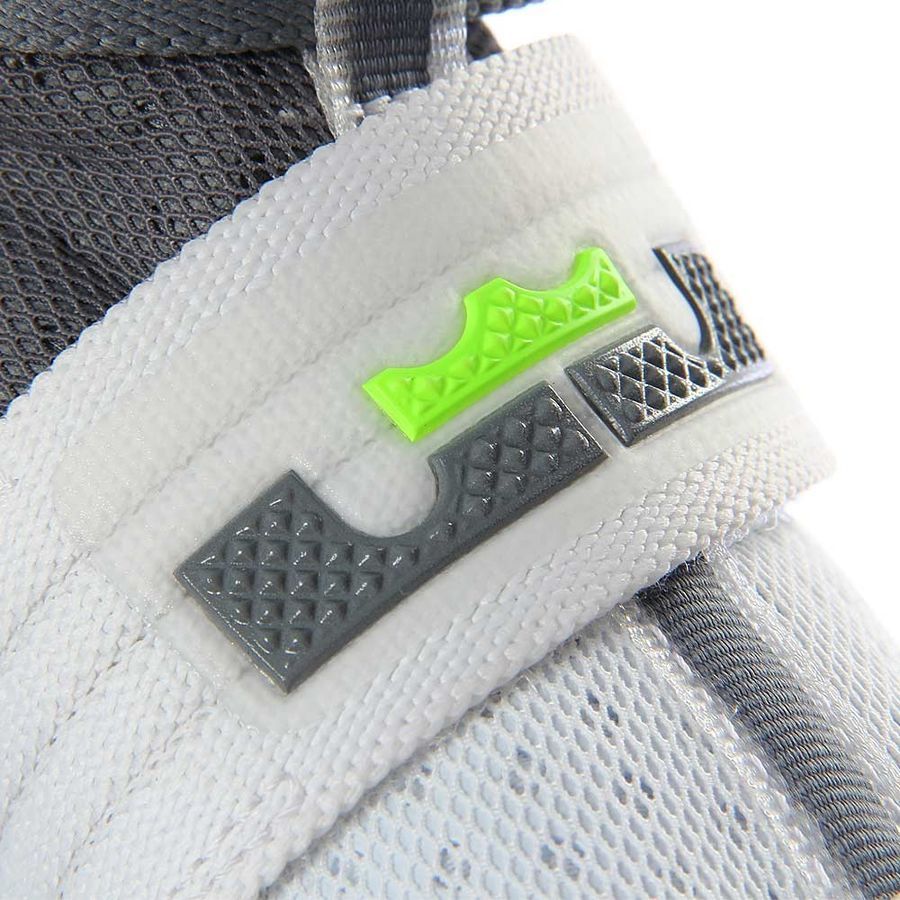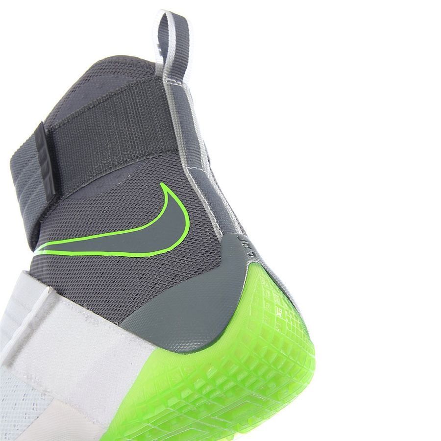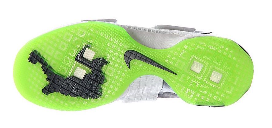 LeBron 系列最为经典的 Dunkman 扣篮人主题登陆全新的士兵 10 代,这双 Nike LeBron Soldier 10 不仅带来经典的深灰色点缀荧光绿的抢眼装扮,更是颇具创意的在水晶外底上呈现了 Dunkman 的经典造型。 在视觉上是清爽又抢眼,外底隐藏的主题呈现又让人颇感惊喜!诸多细节也格外细腻,加上士兵 10 代不凡的实战性能,无疑将成为一款人气颇高的实用鞋款。