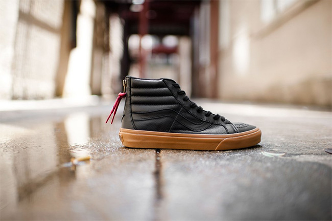 后跟拉链装置呈现的 Vans Sk8-Hi Zip 迎来新配色的发售,这双 Vans Sk8-Hi Zip “Black Gum” 以生胶硫化大底托衬黑色皮质鞋身,拉链装置的设定则使得这双高帮板鞋极易穿脱。 而不凡的劲酷气质,则是 Vans 粉丝所不能错过的!
