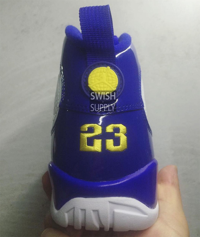 又一款曾经科比的 PE 球员专属配色将投入市售,眼前这双 Air Jordan 9 “Kobe Bryant” PE 以标准的湖人队白紫金配色呈现,紫色线条包裹白色鞋面,细节的金黄色点缀则亮点凸显! 同之前科比的专属版本有所不同的是,后跟并不是背号 8,而是以金黄色的 23 呈现,预计将在年底 11 月份正式发售。