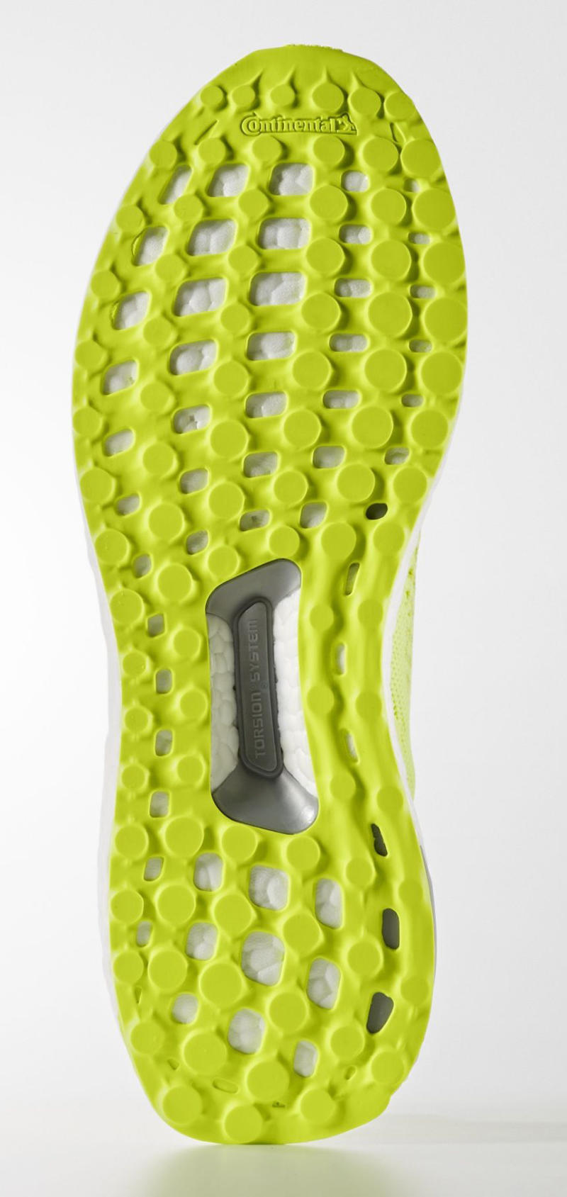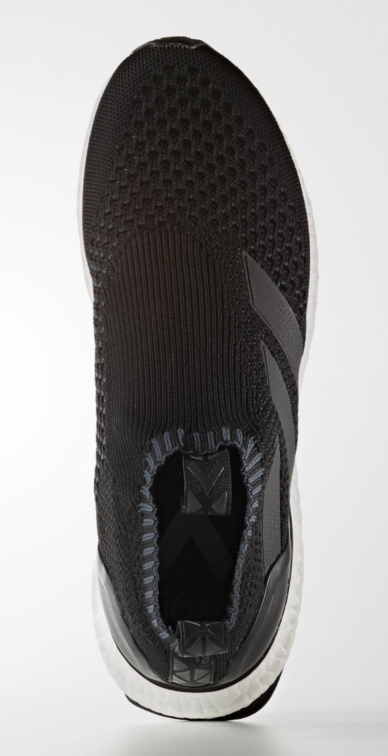 跨界融合设计再度现身 Ultra Boost 鞋型!此番以今年年初发布的 Ace 16+ PureControl FG 足球鞋为灵感,在去掉鞋身硬质框架的同时,Primeknit 编织鞋身也向小腿延伸,形成了一个中帮高度的袜套设定。