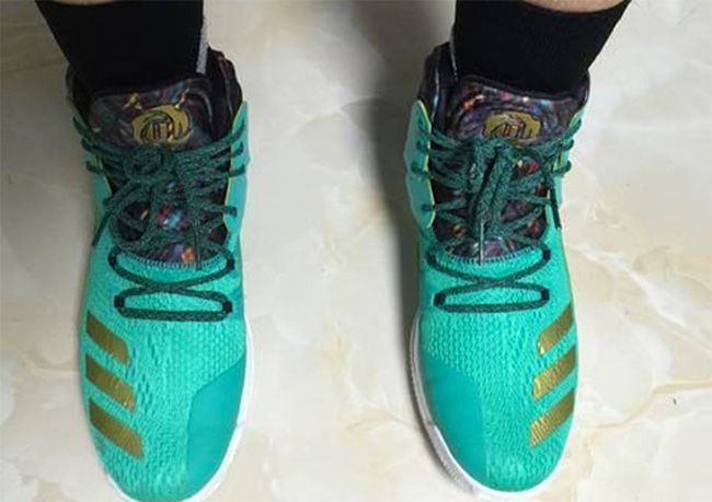 同上一代的薄荷绿装扮颇有些类似,以 Primeknit 编织鞋身打造,搭配全掌的 Boost 中底,鞋舌和特别的脚踝包裹则以独特的多彩纹理呈现,鞋头的三条杠和鞋舌 Rose Logo 的金色装扮,则带来极为突出的点缀效果!
