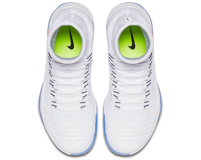 随着里约奥运会的临近,Nike 发布了 Nike Hyperdunk 2016 Flyknit “USA” 主场配色。这款配色的特点是白色的 Flyknit 鞋面,全脚掌的 Zoom Air 气垫,打造了轻薄灵敏的回弹缓震系统,透气的内靴设计。这款配色将在 7 月 18 日发布,零售价格定为 $200。