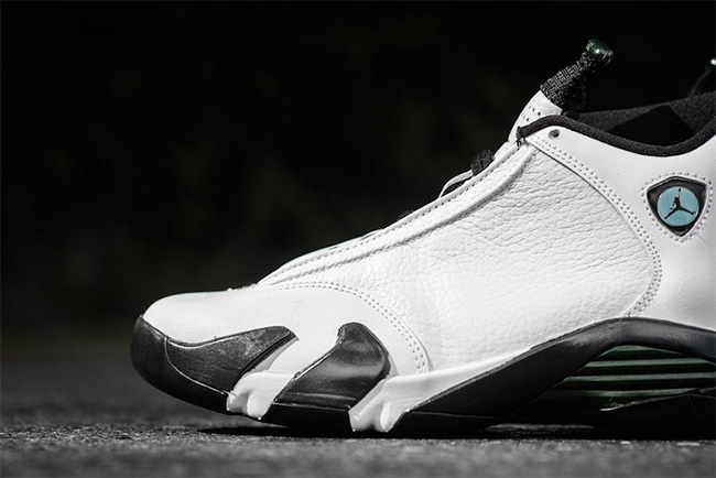 作为 1999 年发售的 Air Jordan 14 OG 元年配色之一,这款 Air Jordan 14 “Oxidized Green” 以白色皮革鞋身搭配黑色细节,简约明快的凸显了 14 代鞋型的精妙活力。