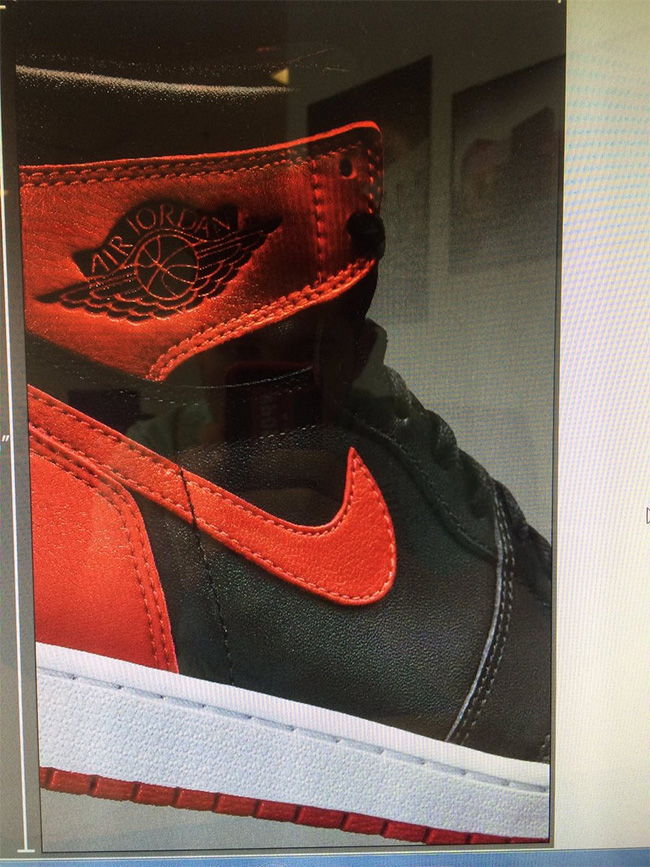 同时曝光的还有 2016 款 Air Jordan 1 Bred Banned 禁穿配色的图片,采用了荔枝皮革打造,我们已经见过清晰的实物了。