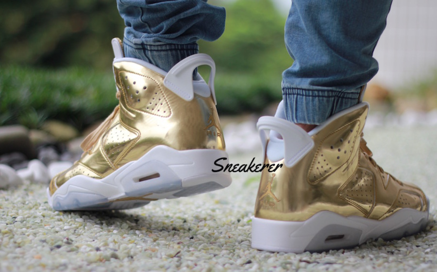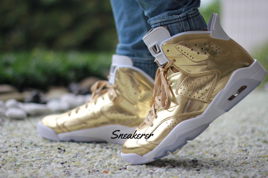 土豪金配色 Air Jordan 6 Pinnacle “Gold” 带来更多的清晰实物展示图片,Air Jordan 6 六代鞋型披上华丽战衣,以白色的鞋底和鞋身细节,托衬全鞋面的金光闪耀,其华丽指数已然爆表! 同 Nike 惯用的液态金主题颇有些类似,不过这款配色参照了斯派克李专属的 Oscar 成就奖专属,虽然细节并没有以蓝水晶材质呈现,但整体的气质相近,无疑是瞬间亮爆街头的精品鞋款。 现在还没有确切的发售日期,预计将在年底登场。 货号:854271-730