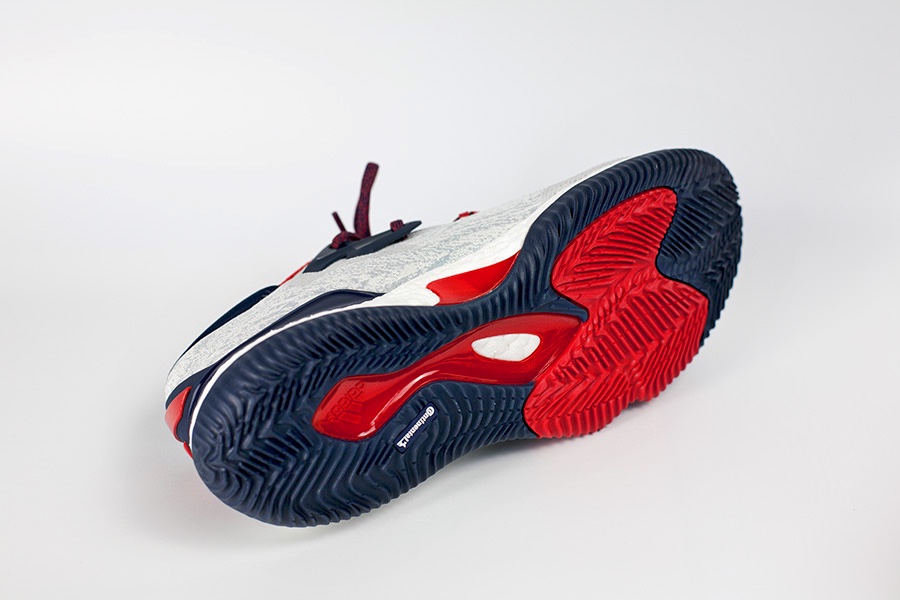 全掌全尺寸的 Boost 中底,是首次在篮球鞋上运用,之前的 D Rose 6 虽然采用了 Boost 中底,但并非全尺寸长度。