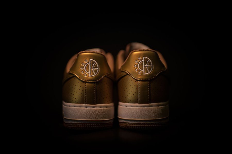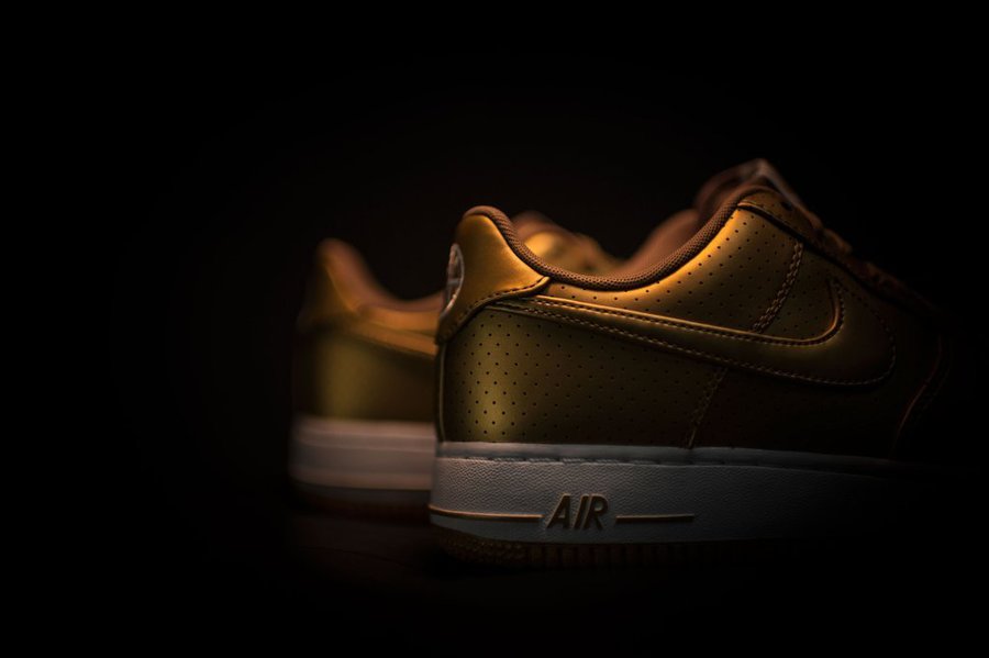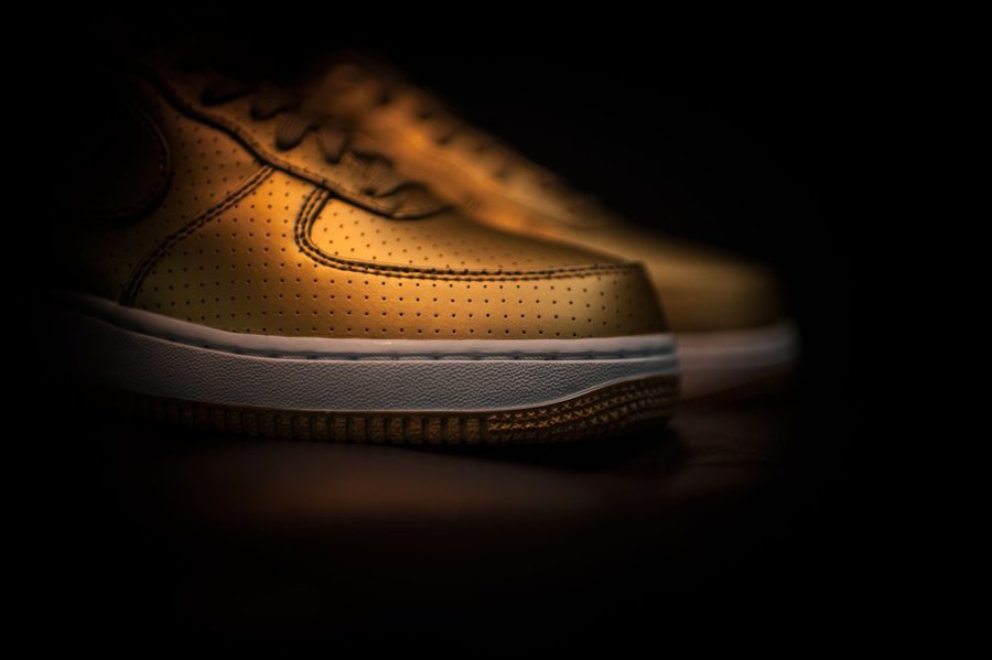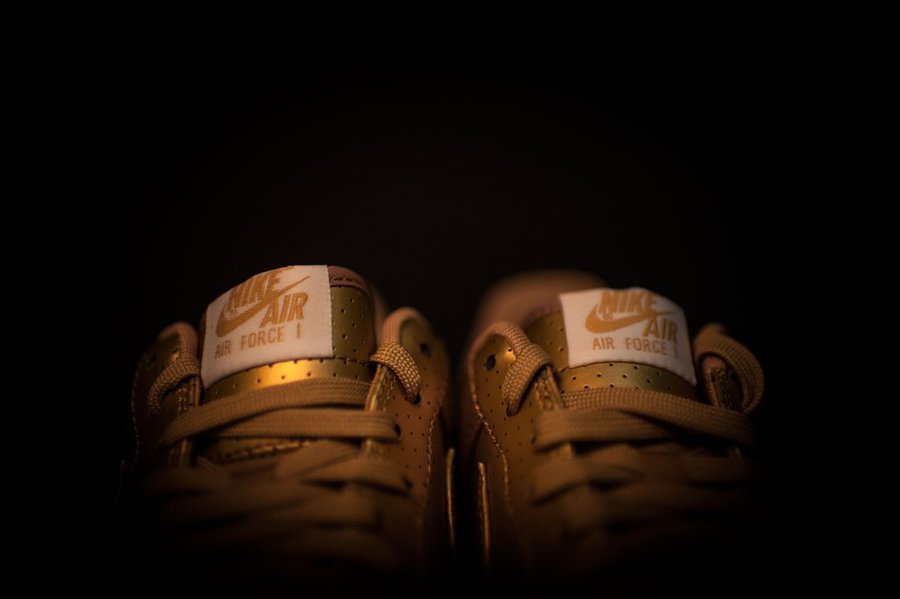 在奥运来临之际,Nike Sportswear 再次祭出眼球大杀器!在经典的 Air Force 1 鞋型上带来一款金装加持的全新华丽配色。 这双 Nike Air Force 1 ’07 LV8 “Metallic Gold” 以浓浓的贵金属光泽呈现,除了颇具规格的皮革鞋面,遍布全身的冲孔纹理也颇有精致气质。 目前已经发售,售价 $100 美元,无疑是喜爱华丽时尚风朋友的最佳之选!