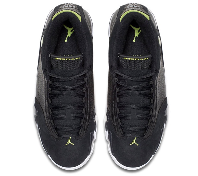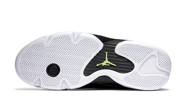 作为今年复刻回归的另外一款 Air Jordan 14 OG 元年配色,黑色皮革鞋身的 Air Jordan 14 “Indiglo” 更具沉稳气质。鞋面采用荔枝皮革打造,鞋头则以黑色的牛巴革呈现,沉稳之余又不失质感层次。以白色外底托衬,细节点缀绿色装饰。多种纹理的搭配,以及反差色彩的装饰,带来了不俗的精致氛围。