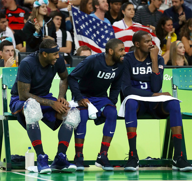 当天 USA 全队都换上了深蓝配色的球鞋,带来更多的上脚精选,一睹为快!