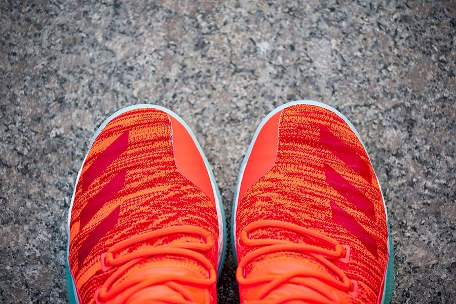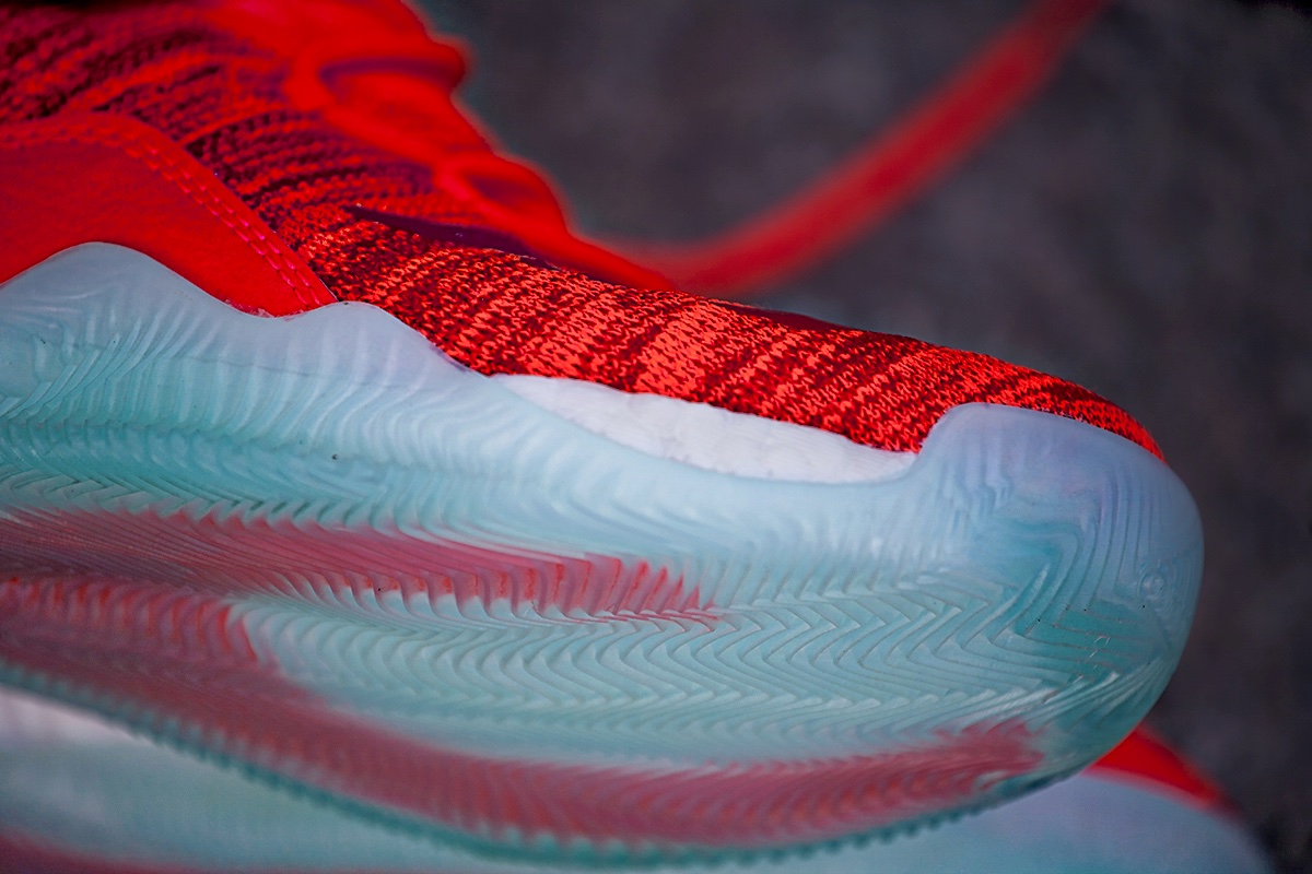 除了全掌全尺寸的 Boost 中底首次应用在罗斯战靴上,本次采用了 Primeknit 编织鞋面,在视觉和舒适感上都有不凡的表现。
