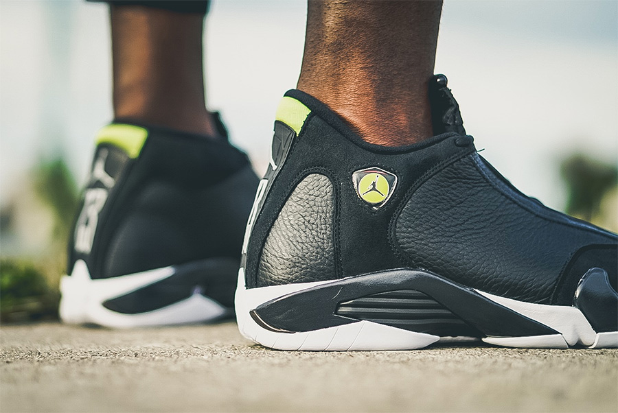 8 月 13 日将迎来 Air Jordan 14 OG 元年经典配色的发售。这款 Air Jordan 14 “Indiglo” 本次的官方名称为 “Black/Vivid Green”,优质皮革的光泽质感依然是核心视觉,两种皮革材质的搭配,以及白色、绿色细节的装饰点缀,上脚感受依然独特,沉稳低调的彰显了法拉利鞋型的战斗内涵! 中国区将在本周六同步上架,售价为 ¥1399 RMB。 货号:487471-005 发售日期:8 月 13 日 发售价:¥1399 RMB