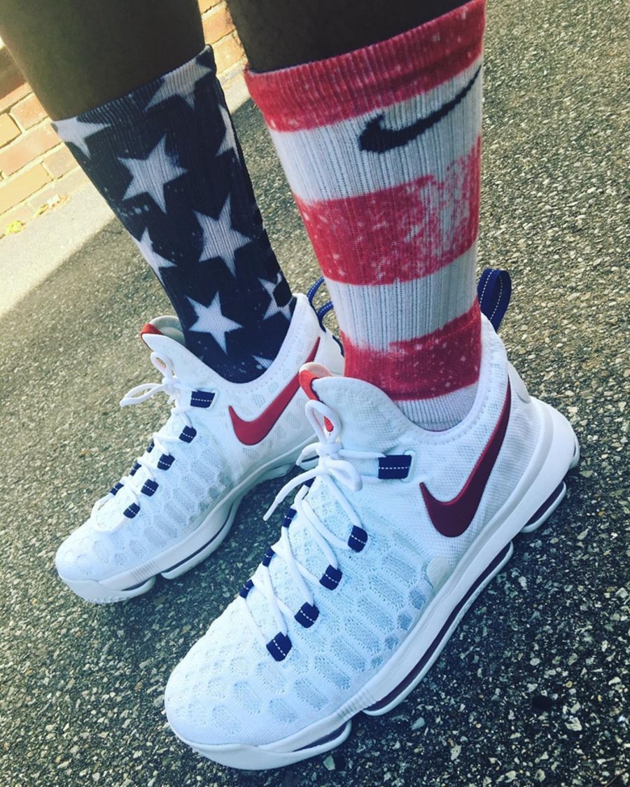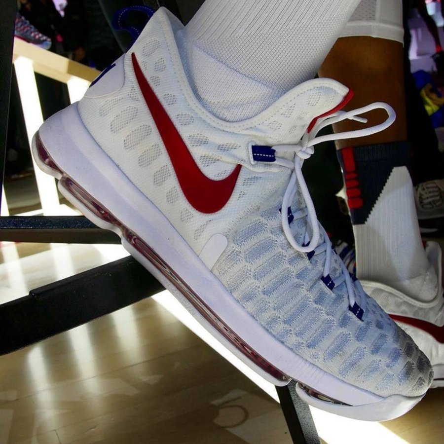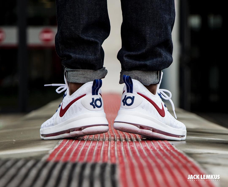 作为目前最热门的顶级实战鞋款之一,KD 9 可谓集万千宠爱于一身。 Flyknit 鞋面 + 全掌 Zoom Air 的顶级配置赢得了一致的好评,而这款奥运会配色则在当下更加引人注目。逆天的脚感,轻盈透气的鞋面,无不使它成为夏季最合适的球场大杀器。