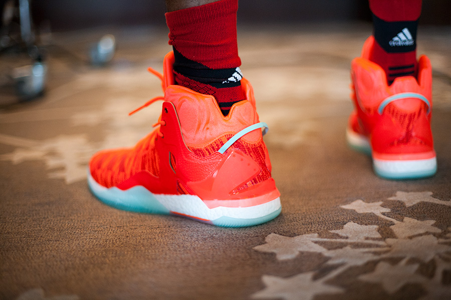 A:对我来说是脚踝,我需要有脚踝的支撑。市面上很多低帮球鞋,大家也都很想要低帮球鞋,但那不是我要的,我十分需要脚踝的保护和支撑,在球场上这很实用。D Rose 7 还有 Boost 的配备,我每次穿上它都感觉是一双新鞋,adidas 正确的设计了这双球鞋,我很感谢。