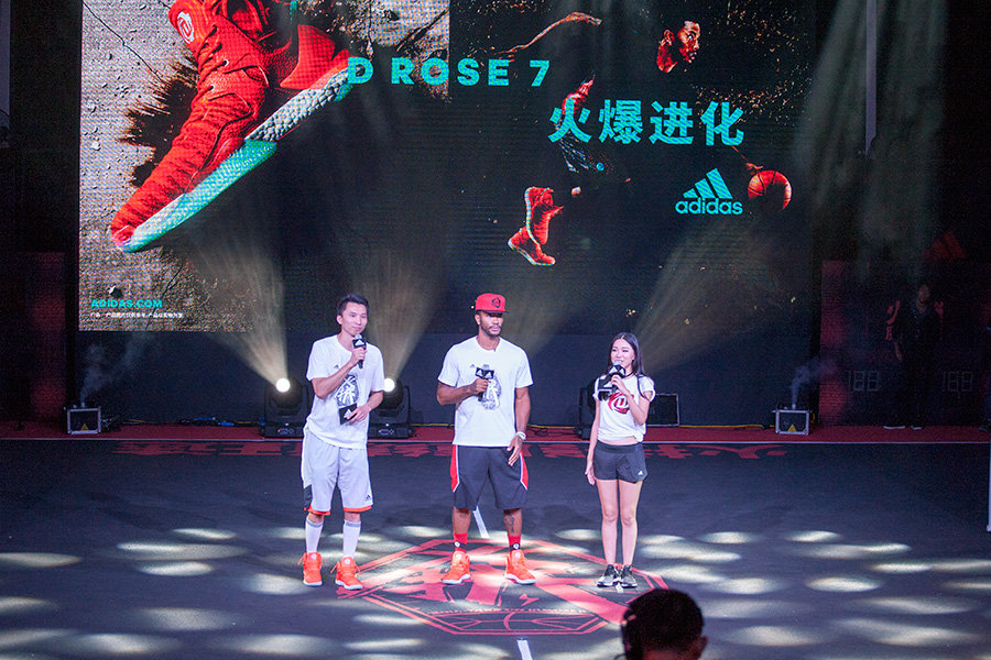 在晚间进行了 adidas 火拼活动的总决赛,除了开场中国飞人们带来精彩绝伦的扣篮大赛,稍后的总决赛更是精彩,这一强对抗的比赛均采用了 D Rose 7 上脚,无论是转向急停还是突破飞扣,都表现得得心应手。