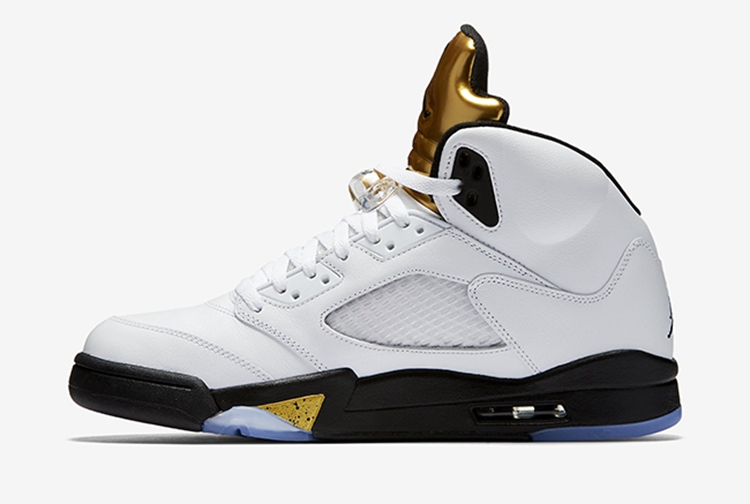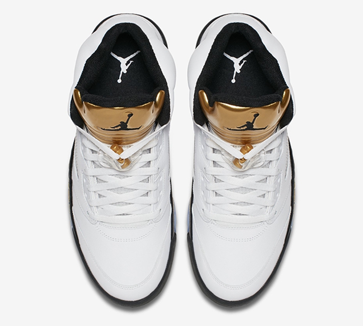 眼前这双以奥运金牌为设计灵感的 Air Jordan 5 “Olympic”,作为 Jordan Brand 庆祝里约奥运会的两款 AJ5 之一,现已正式发布官方图片。