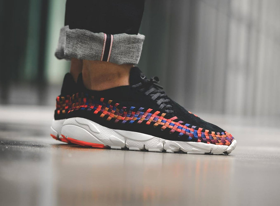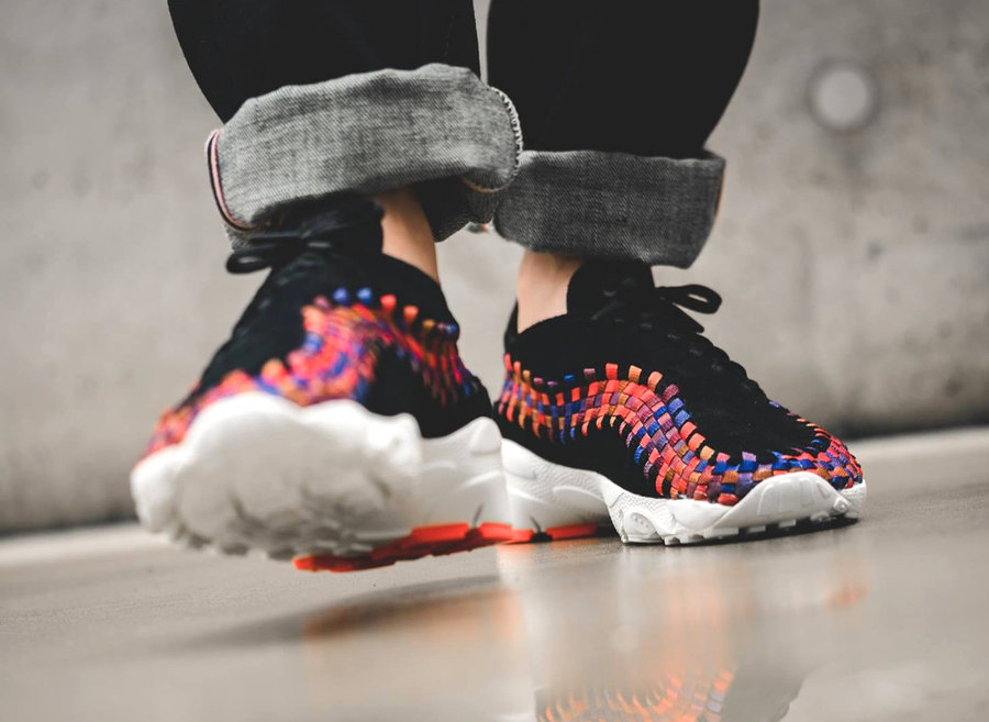 融合了 Air Footscape 和 Woven 编织两大经典元素,不仅有着穿着舒适感上的完美表现,极富街头潮流表现力的外表,也使得 Nike Air Footscape Woven 在上一个潮鞋时代成为市场焦点! 在街头已经被袜子鞋彻底攻占的今天,这款经典的潮鞋再度回归视野,以一黑一白两款彩虹配色作为首发尝试,一石激起千层浪,其人气号召力再度被证明! 继续为大家带来全新黑白双色的上脚实拍,感受这一经典潮流鞋款的独特魅力!