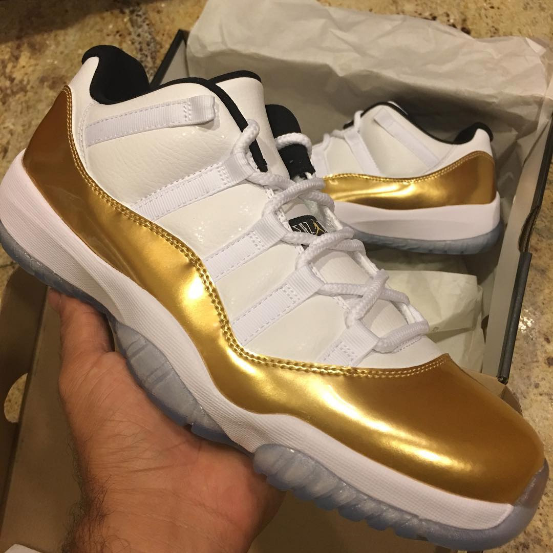 闭幕式主题的 Air Jordan 11 Low “Closing Ceremony” 不仅带来白金搭配的抢眼感受,全面采用皮质呈现,在整体质感和细节表现上更加突出。金色的漆皮环绕包裹,在白色基调之下的奢华气质恐怕是街头巷尾回头率之最!