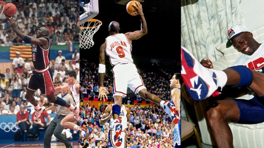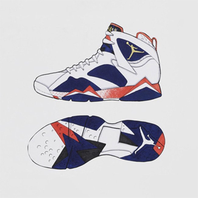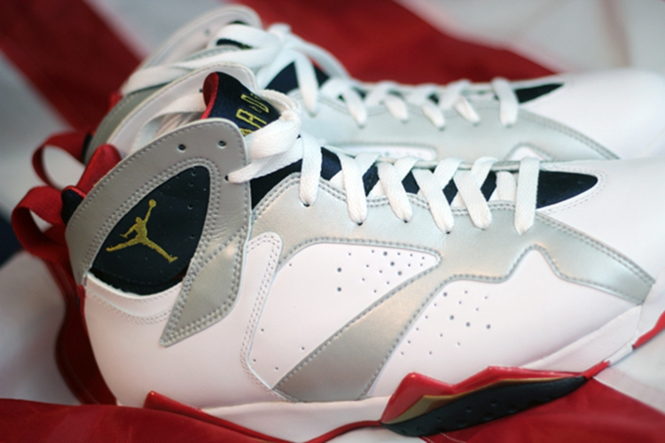 作为元年配色之一的 Air Jordan 7 “Olympic”,迈克尔·乔丹在 1992 年穿着它与美国“梦之队”一起获得了亚特兰大奥运会金牌。这双奥运配色的七代战靴是唯一一双后跟处为数字 9 (Jordan 国家队号码)而非 23 的配色。整双设计灵感来源于非洲的部落文化,鞋身采用白色和银色皮革拼接而成,代表着美国专属配色的白、红、蓝三色在中底及外底相互交织,将非洲部落的艺术气息展现到最前沿的球鞋设计之中。