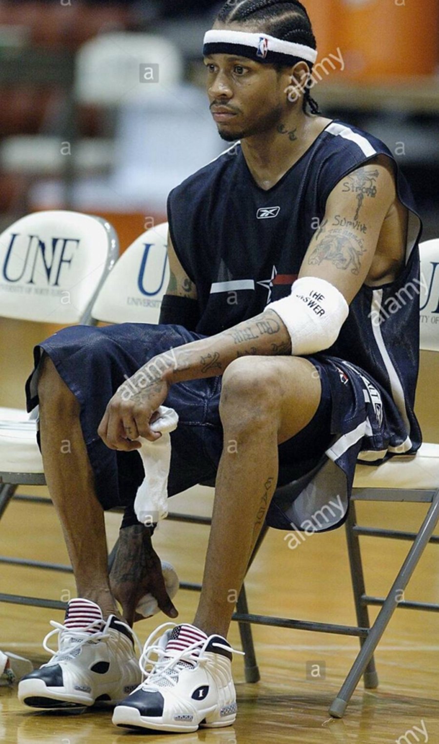 04 年雅典奥运会,艾佛森领衔的美国队自“梦之队”成立以来,首次未能进入决赛,唯一让我们感到慰籍的就是艾佛森脚下的奥运专属配色 Reebok Question 2 “Olympic”。