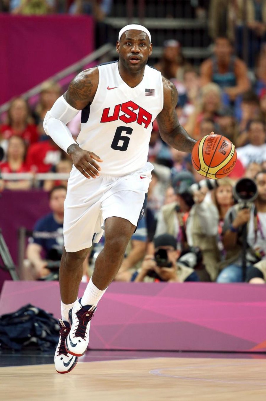 作为“梦十队”的主力球员,勒布朗·詹姆斯再次携手众星以全胜战绩一举拿下伦敦奥运会男篮比赛冠军。而在决赛中,勒布朗也特意换上了 Nike 为他精心设计的 Lebron X 奥运配色战靴。