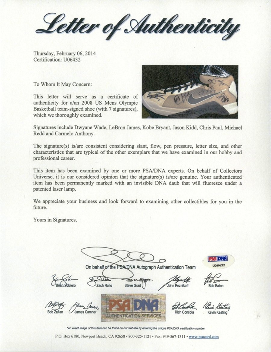 ▽ 2008 北京奥运会男篮决赛对阵西班牙科比亲签比赛用鞋