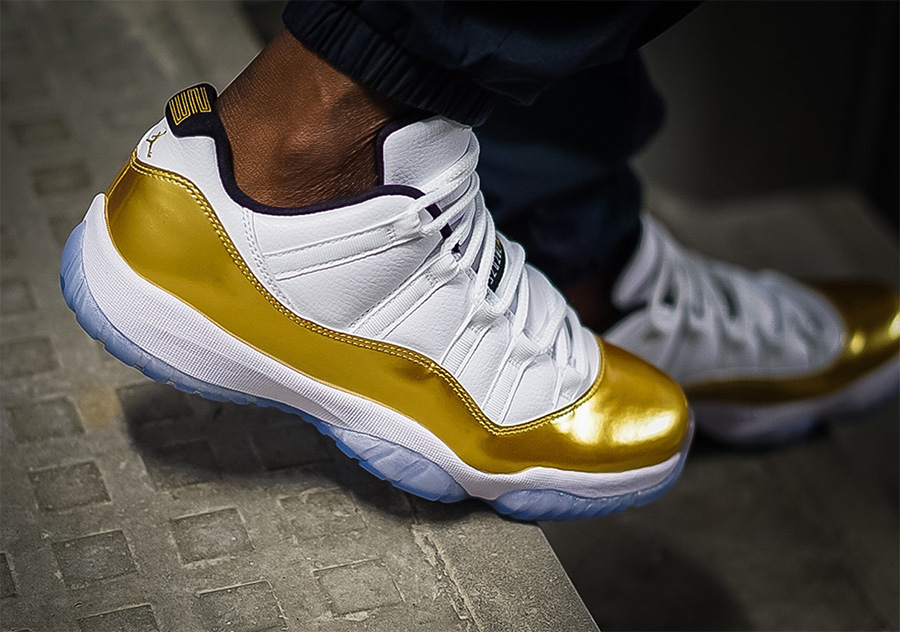 将于 8 月 27 日发售的 Air Jordan 11 Low “Golden Medal” 以奥运会的华丽闭幕为主题,以精致又华丽的外表,已经吸引了大量的关注度! 采用了皮革材质替换了传统的网布面料,鞋领和鞋舌的质感突出,带来格外精致的奢华氛围。而金色的漆皮环绕包裹,营造的视觉冲击力恐怕亮瞎全场无死角! 无论是蓝水晶外底的托衬,还是细节金色的注入,都颇为精细的锦上添花,为这款金牌主题的新品增添了更多的亮点闪现! 货号:528895-103 发售日期:8 月 27 日 发售价:$170