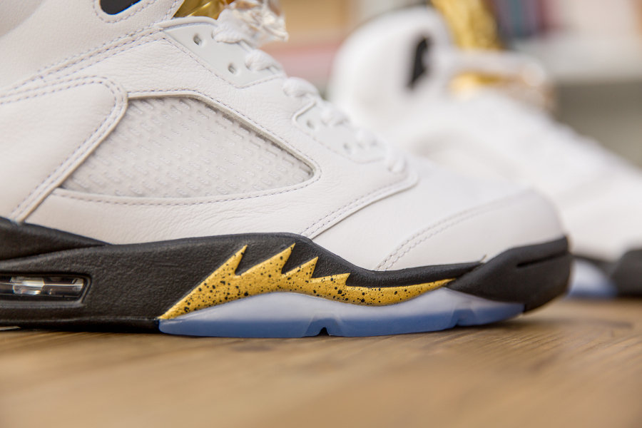 奥运主题降临 Air Jordan 5,带来一款既清爽又亮点突出的全新配色。 这款 Air Jordan 5 “Metallic Gold” 将于 8 月 20 日正式发售,中国区 Nike.com 官网将以 ¥1399 RMB 的发售价售卖,目前淘宝商家的预售价格略微高于原价,请有兴趣的朋友关注。 货号:136027-133 发售日期:8 月 20 日 发售价:¥1399 相关信息: >> Air Jordan 5 “Olympic Gold” 白金配色上脚展示