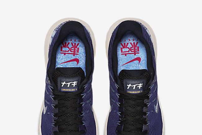 搭载 Nike 全新登月大底的 Lunarglide 8 SP 此番带来了深蓝色的东京别注配色,该鞋后跟及鞋身上的 Swoosh 采用扎染风格呈现,后跟及鞋垫则展现了“东京”和“Tokyo”字样,鞋舌更别具心裁的采用日语片假名文字来展示“Naiki”的发音,给人一种细腻流畅的整体感受。