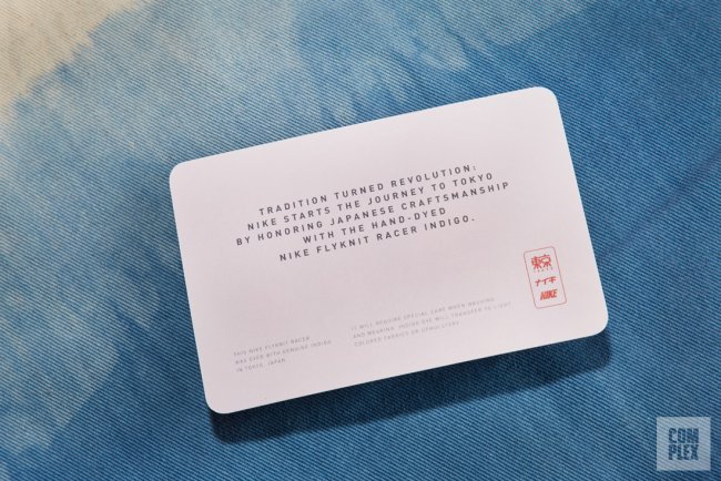里约奥运会闭幕之际,也是 2020 年东京奥运会开始紧张筹备的起始!在发布了一系列里约奥运配色的球鞋之后,Nike 也带来了首款 2020 Tokyo 东京奥运主题的球鞋! 眼前这双 Nike Flyknit Racer “2020 Tokyo” 以日本传统手工印染工艺打造,在色系上也采用了颇具日本风格的靛蓝色,鞋舌以日文呈现了 Nike 字样,发音为 Naiki。 仅仅制作了 100 双,并不会公开发售。