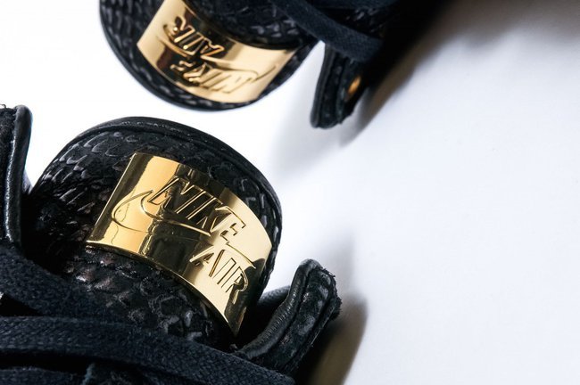 其中人气最高的非帮主上脚的黑色蛇纹版本莫属,鞋身采用仿蛇皮纹理呈现,鞋带扣、飞翼 Logo、鞋舌及后跟都采用金光闪闪的 24K 镀金打造,加上菱形纹理的皮革鞋垫,彻头彻尾的精工奢侈品。附属的高规格防尘袋及特质鞋盒配件,均让这双经典鞋款一跃迈入了奢侈品的范畴。