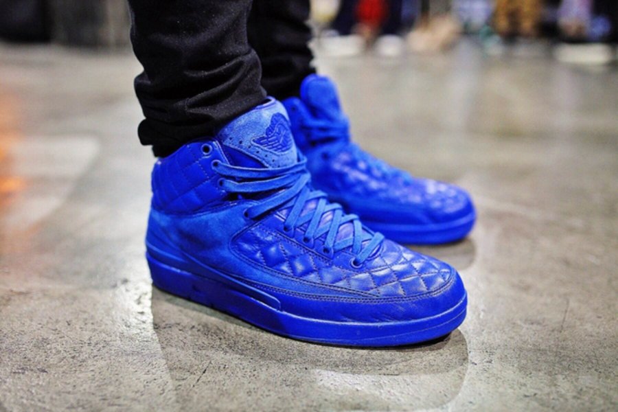该鞋以奢侈品羊皮皮包为设计灵感,鞋面选用麂皮和柔软皮革拼接而成,再将车线网格皮质鞋面细心的跃然呈现,配套的红色鞋盒上带有金色飞翼 Logo,蓝色的球鞋则以白色优质防尘袋包裹,同时附有精美的金色飞翼别针。鞋垫上的 “BEAVERTON ITALY CHICAGO” 字样则把我们思绪带回到 Air Jordan 2 最初的年代,向意大利优质的精湛做工致敬。