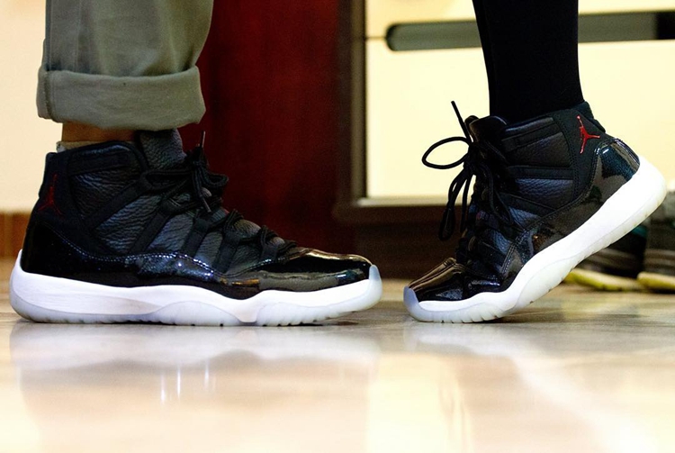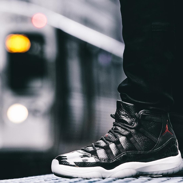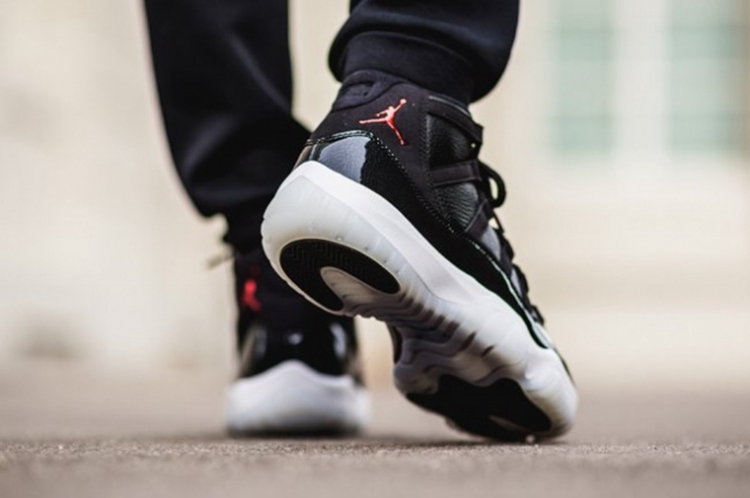 该配色借以极高人气的 Air Jordan 11 为蓝本,冠以乔丹领衔的公牛队 72 胜 10 负辉煌战绩为设计灵感,在 2015 年底压轴登场。作为帮主本人最喜欢的战靴之一,此番鞋身采用黑色优质皮革辅以光彩夺目的全新漆皮呈现,白色中底和外底衬托出极具视觉冲击的红黑色碳板,全新的金属色 Jumpman Logo 则为我们带来了一丝前卫的潮流气息。无论是驰骋球场还是漫步街头,都会成为全场瞩目的焦点。
