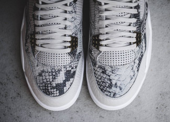 此外同样作为 Air Jordan 4 Premium 系列而推出的蛇皮版本 “Snakeskin”,则与这款内敛的风格截然不同,这双蛇皮版本更为高调的表达了其奢华气质,上脚效果更为霸气精致。