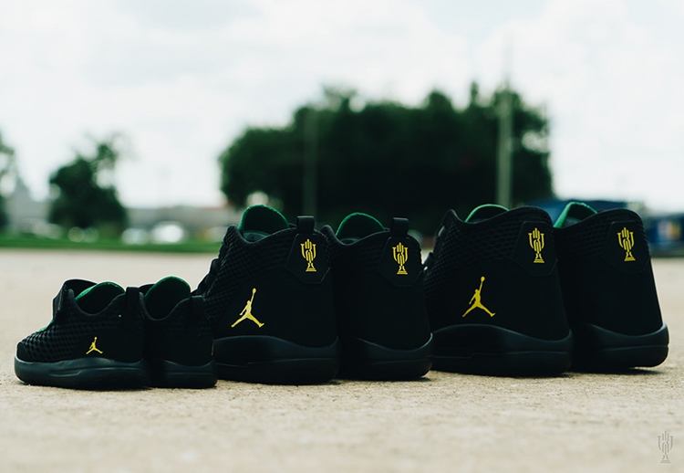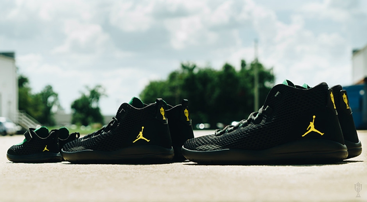 该鞋采用全黑颜色示人,带有巴西风情的彩色饰条及亮黄色奖杯标志,使其散发出 Trophy Room 独有的高贵气质。本次独家打造的 Jordan Reveal 将以全家福尺码发布,并还将有两款高质感拖鞋及相关服饰一同上架。