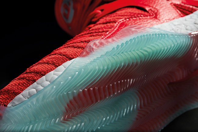 Primeknit 织物鞋面虽不是首次出现在罗斯战靴之中,但此次全新进化却暗藏玄机,对前代遗留的问题进行了悉数改进,这点确实要为 adidas 大大的点一个赞。本次 D Rose 7 在 Primeknit 的内层加以轻量化条状尼龙及透气网布双层加固,来对织物面料辅以支撑及保护,并人性化的在大脚趾位置加入胶皮材质防止急停或启动时,脚趾对织物鞋面的冲顶,有效提高了鞋头的舒适度及耐用性。