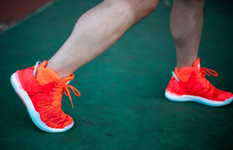 作为罗斯首款全掌 Boost 战靴,此番 adidas D Rose 7 Boost Primeknit 采用了开放性的 Boost 设定,使得我们无论是在新鞋到手的按压中还是在球场上的实战中,都能深切感受到 Boost 带来的明显回弹效果。采用后高前低的递进设计,在保证后掌极致缓震的同时又赋予了前掌快速的启动响应。在本次的实战测试中,每一次起跳落地,均能享受着 Boost 带来的优越缓震性能。