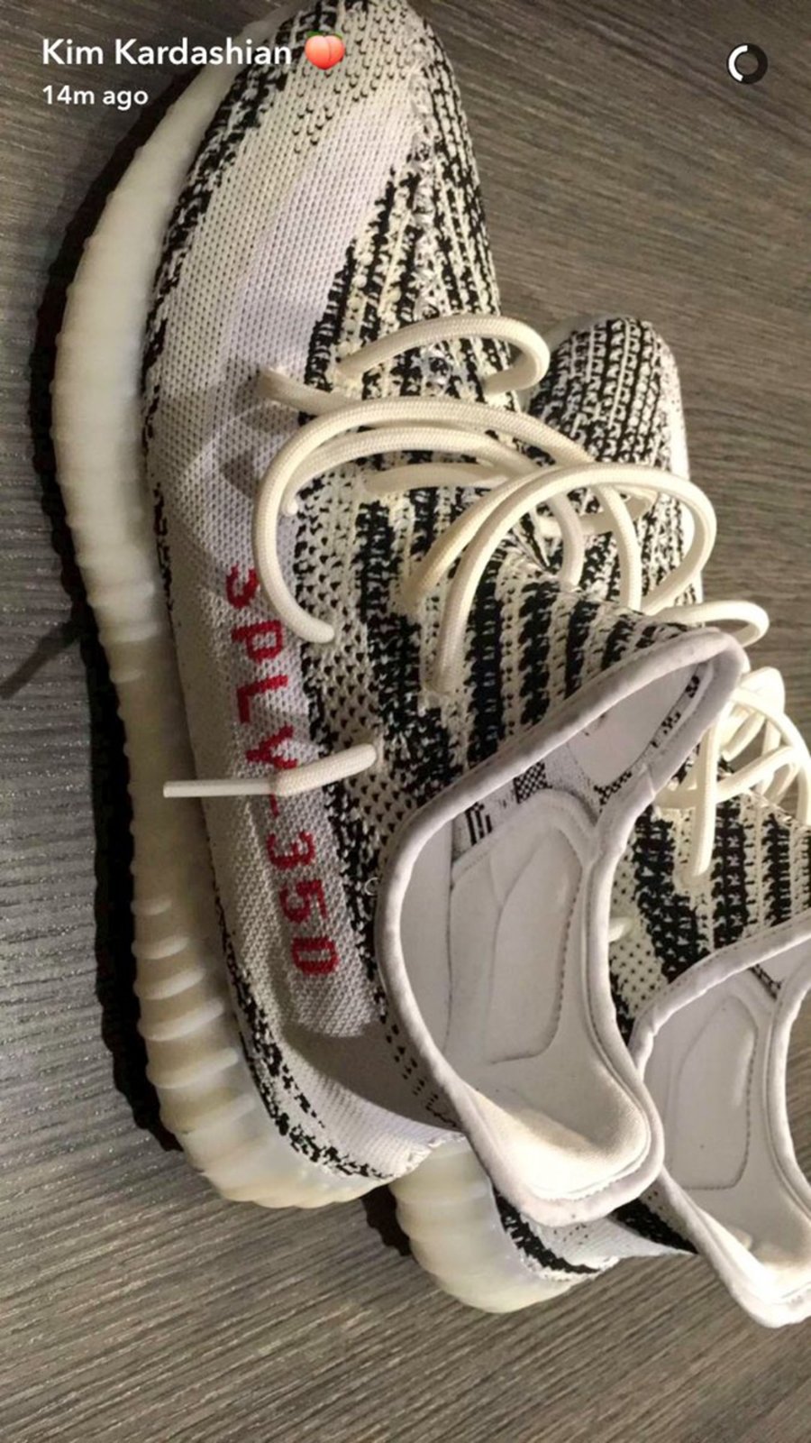 近日 Kanye West 上脚一款全新浅色系 Yeezy 350 Boost V2 。随后不久,“大姨子” Kim Kardashian 便晒出同款球鞋的一张近照。