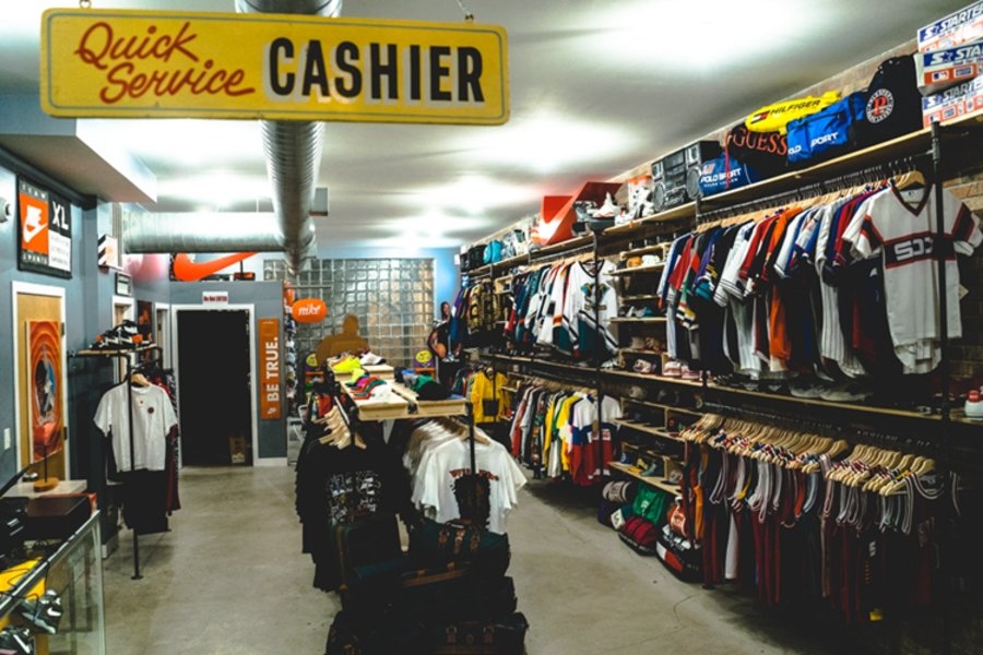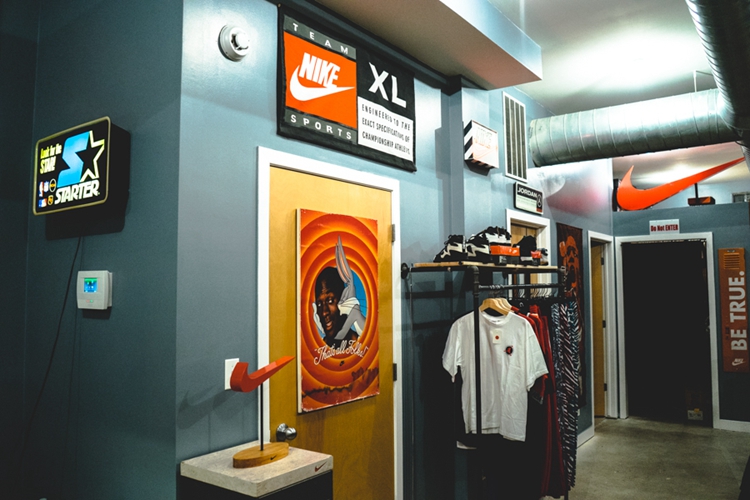 步入芝加哥的 Boneyard Chicago 店中,浓浓的复古气息扑面而来。店中的陈列装潢均以八、九十年代风格呈现。门上挂有《空中大灌篮》的元年海报,以及现已改头换面的锐步羚羊标志。元年的球衣与球鞋更是让人大呼过瘾,每个细小的环节都有可能唤起曾经你刚刚接触球鞋的那份懵懂记忆。