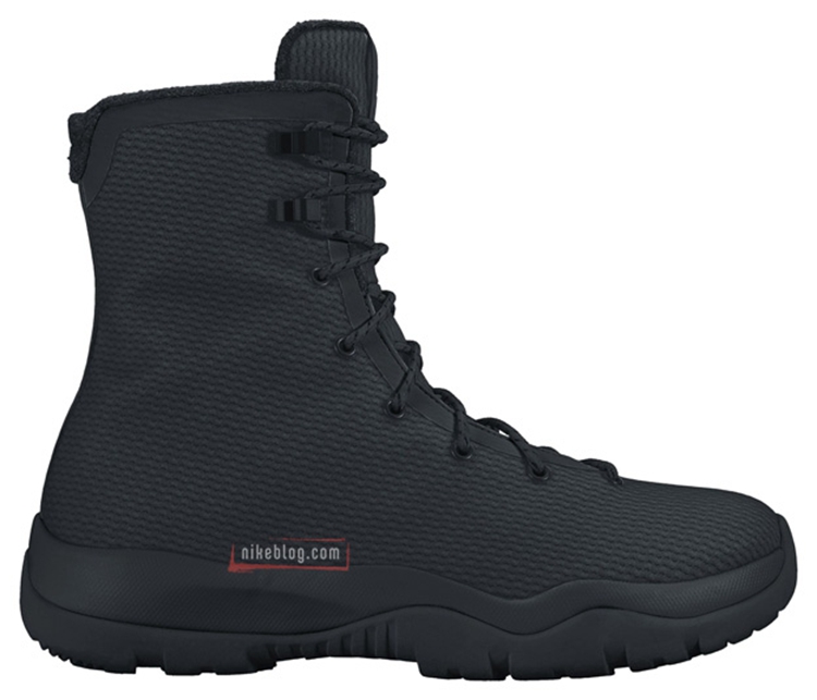 以高帮靴型呈现的 Jordan Future Boot 选用 eVent 防水透气织物,打造 Future 系列惯用的非对称风格鞋身。AJ11 的中底、后跟和 AJ 12 的金属鞋带扣都融入到该款的设计元素之中。针对恶劣天气而全新设计外底则更加强调耐用性及防滑性。