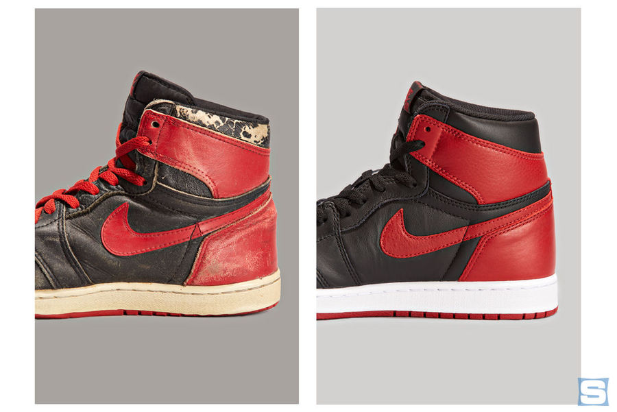 1985 年以公牛队黑红惊艳亮相 NBA 赛场,已经跨越了 31 年的这双黑红 Air Jordan 1 Retro OG High 依然魅力不减,反而平添了更多的时尚气息! 带来由 Sole Collector 呈现的 1985 款同 2016 款的实物对比,看看饱经岁月沧桑的 85 OG 款,同 2016 采用荔枝皮革的精美新款,有着怎样的一份穿越感受!