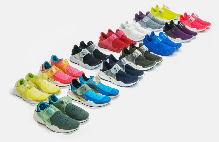 2014 年底,藤原浩将这双阔别十年之久依然难以割舍的 Nike Sock Dart 再次改良重生,以 Fragment Design 联名的方式重回流行金字塔顶端,也就成就了文章开头所提到的万人追捧的景象。今年 Nike 不光为我们带来了更加丰富实用的鞋身材质及缤纷靓丽的多种配色(详情点此进入 Nike 官网),更将 Sock Dart 列入 NIKEiD 的行列,鞋迷们可将自己独到的设计转换成为现实,想尝试的亲们点我。更为值得高兴的是,现在价格也趋于稳定,入手压力随之轻松许多。