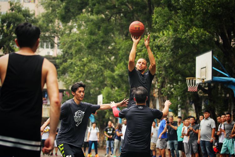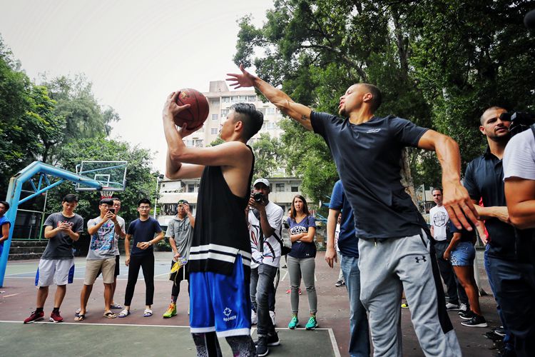 昨日,在 Under Armour “传旗亚洲”之旅广州站的行程中,库里突袭广州体育学院外场,与当地球迷进行了一次出乎意料的亲密接触。其中有幸参与的同学表示,库里惊现球场简直幸福来得太突然了!!!