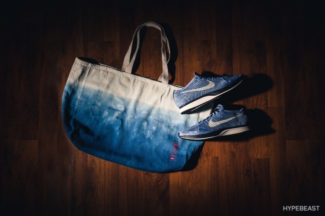 在里约奥运会落下帷幕之际,Nike 也适时的推出这款 Nike Flyknit Racer “2020 Tokyo” 以宣告 2020 年东京奥运会的筹备开始! 这款全球限量 100 双的东京别注,在 Flyknit Racer 经典鞋型的基础上,以日本传统的蓝染手工打造。在第一双 Flyknit 跑鞋的经典鞋身之上,带来淡雅又极富品质感受的靛蓝装扮。 鞋舌以日本片假名呈现了 Naiki 字样,另外鞋垫上的 “东京” 字样,以及附带的渐变蓝染手袋也同样抢眼!